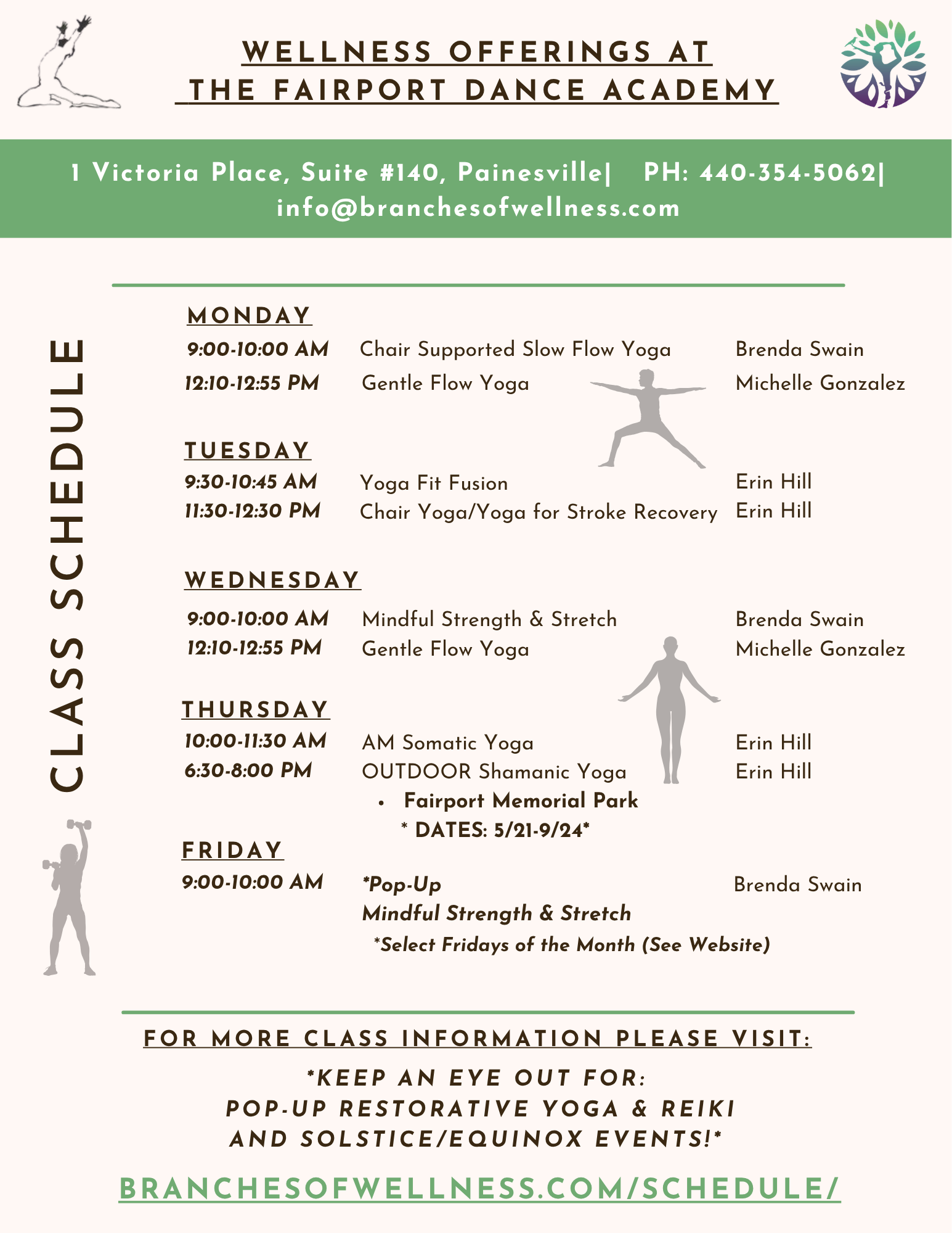 Our daytime and afternoon classes are at our NEW location, the Fairport Dance Academy: 1 Victoria Place, Suite #140, Painesville (just a few doors down from our old location).